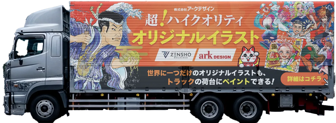 トラックの荷台に、一際目を惹く「イラスト」や「似顔絵」、「ユーモア」という温かさを吹き込むことで、街の風景に馴染みながらも見る人を笑顔にさせる効果を発揮します。単なる認知拡大にとどまらず、企業ファンを増やす「愛されるデザイン」を実現可能です。